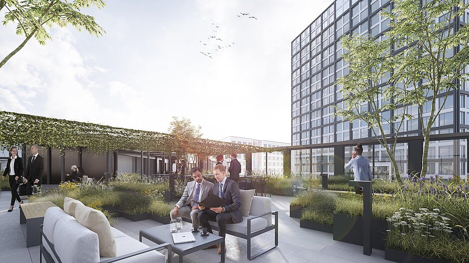 The MERGENTHALER is a truly pioneering project - also in terms of the demands placed on the working environment. With flexible floor plans, attractive communal areas and a large roof terrace of over 1000 square metres, everything that makes up the office of the future has been tackled here.
