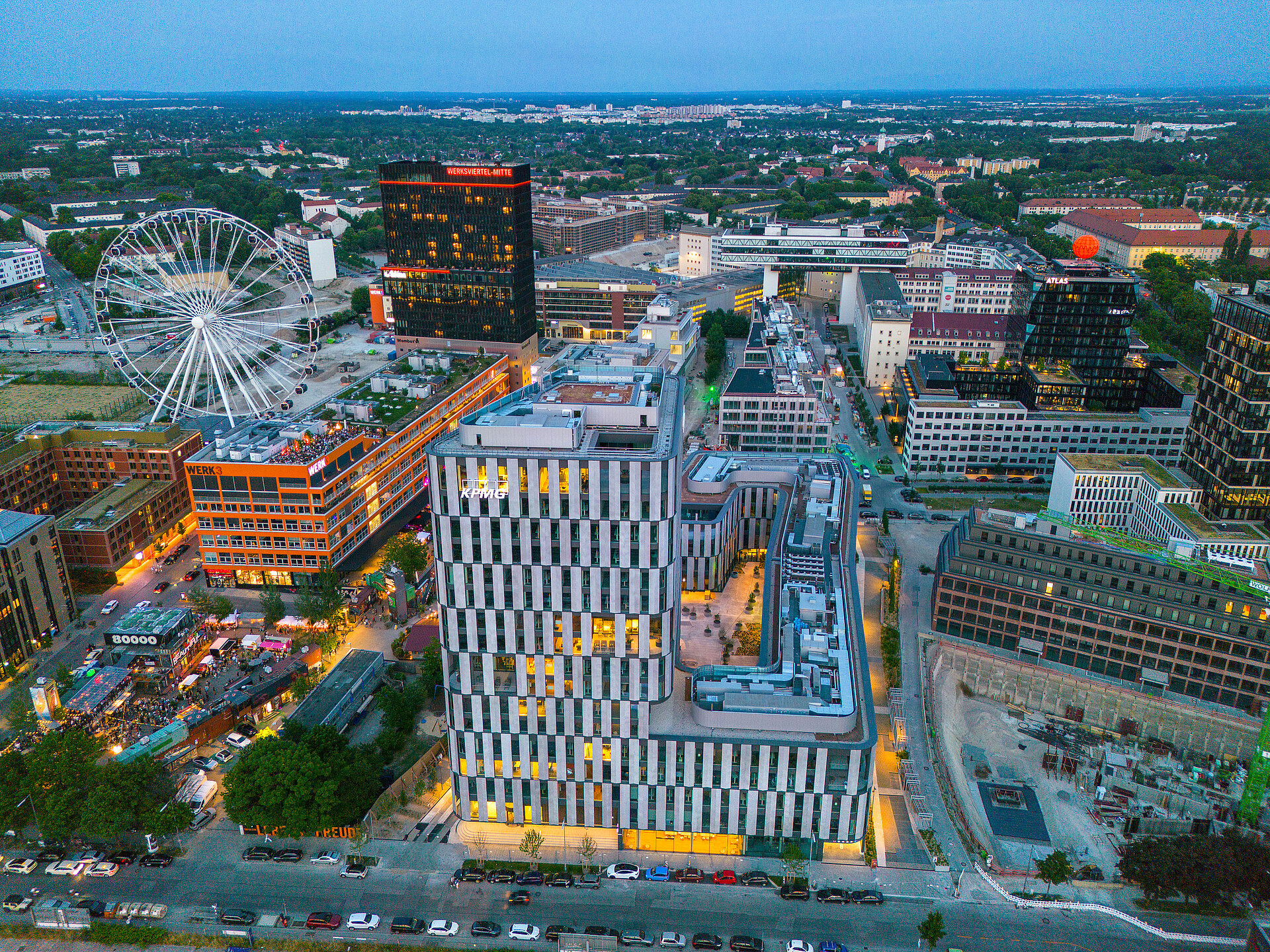 Since the 1940s, the Friedenstrasse site has been home to globally successful companies such as Pfanni and Optimol-Ölwerke. After the production facilities were relocated, the area was transformed into a vibrant nightlife centre. For almost 20 years, Kunstpark-Ost, later Kultfabrik, and the Optimol site were considered the largest nightlife and cultural district in Europe. Today, the Werksviertel comprises a 39-hectare site where a new, modern, vibrant and sustainable district is being created. In addition to offices and restaurants, there are hotels and retail outlets. The new district also offers cultural life and attractions such as the Umadum Ferris Wheel. The area's rich history and courage to embrace change will continue to be felt in the future.